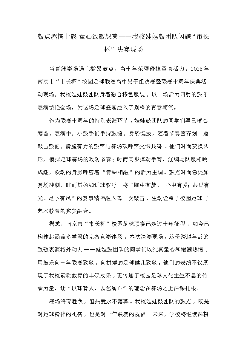 上一篇:娃娃鼓参加2025年江宁区“乐享足球”园街联赛湖熟主场演出 下一篇:已是最后一篇